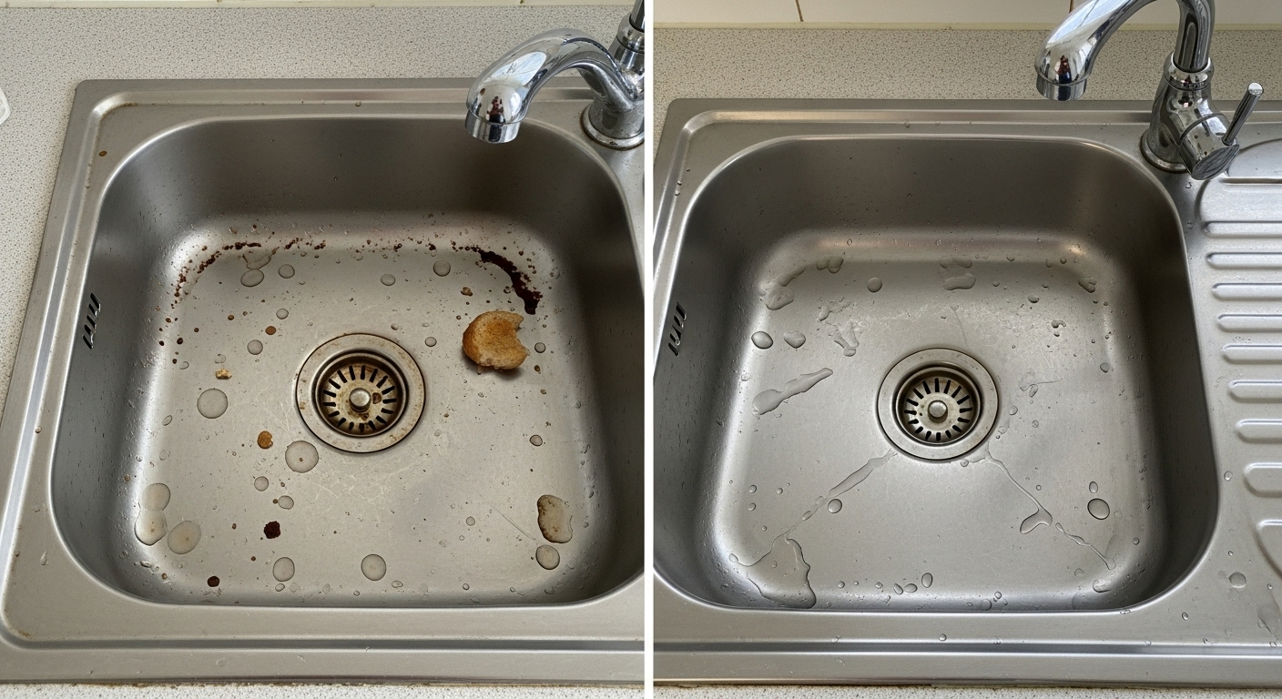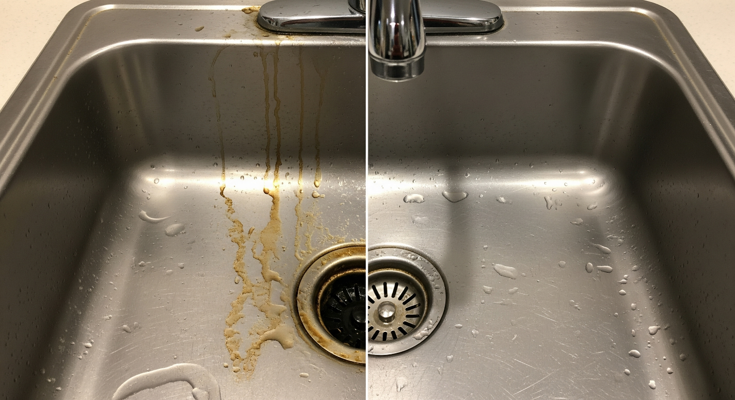 - تمیز نکردن سینک بهطور منظم و منتظر ماندن تا لکهها شدید شوند.