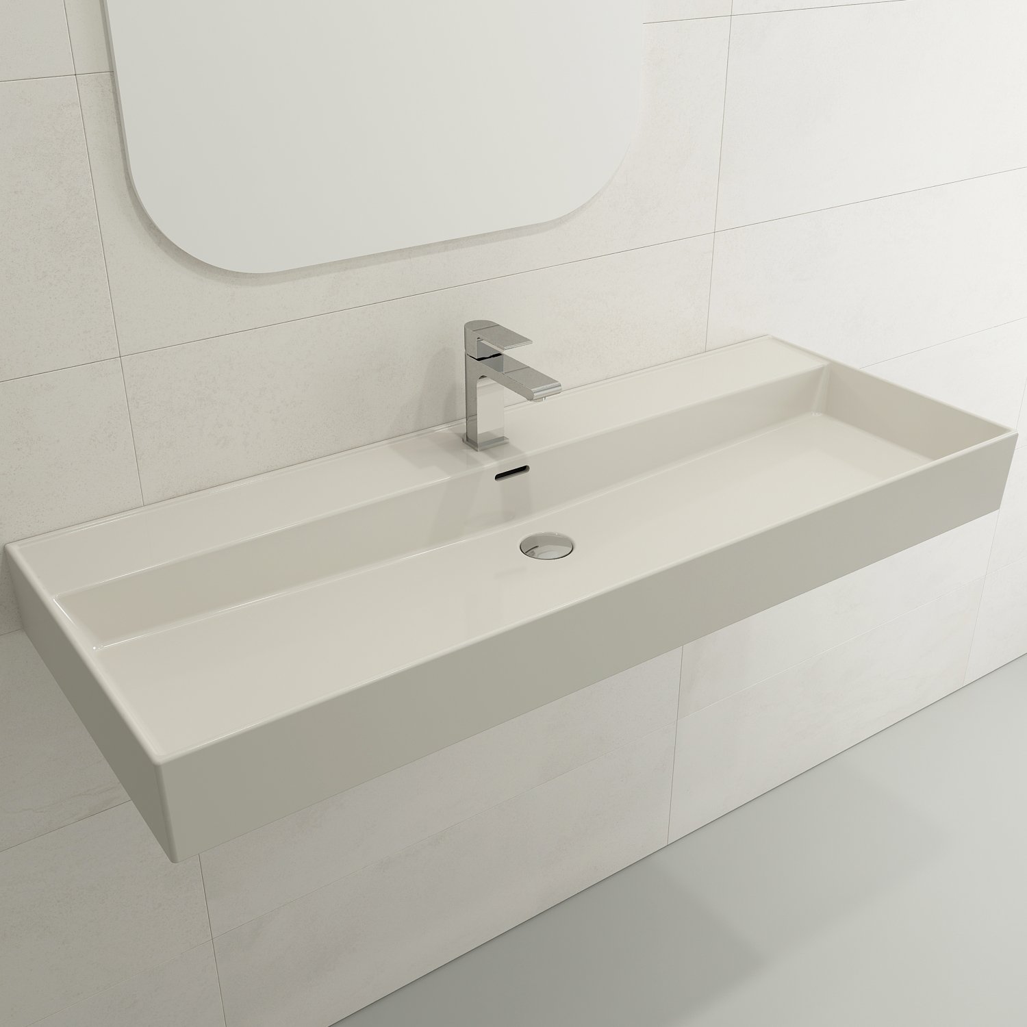 • دارای سرریز و جای نصب شیر تک‌سوراخ (Single-Hole)